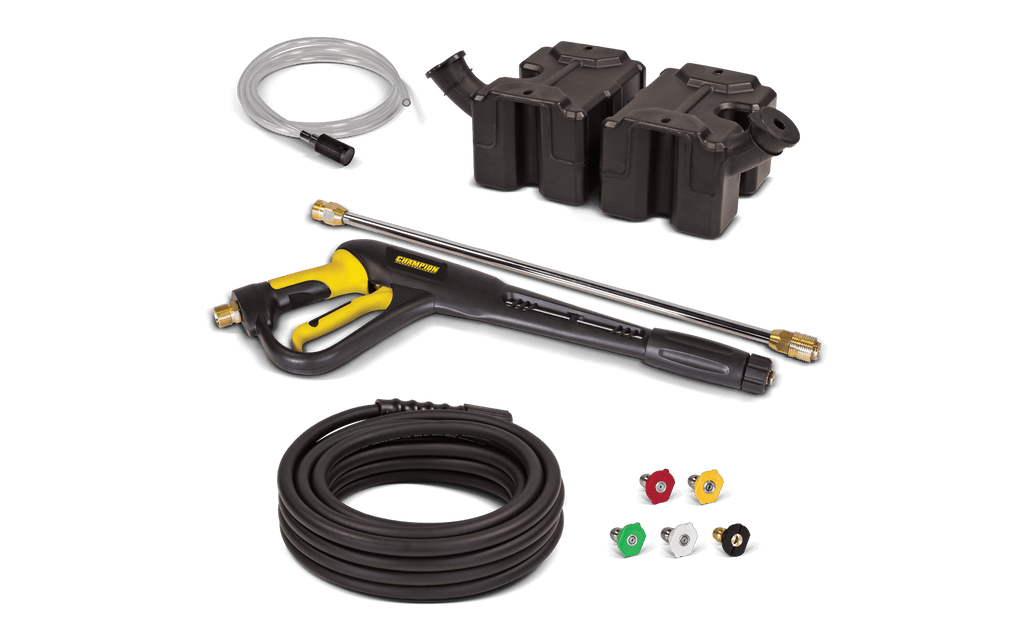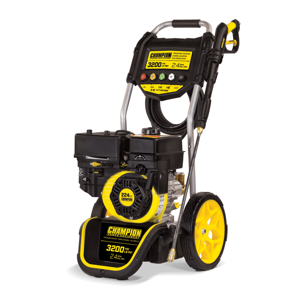 Der Benzin-Hochdruckreiniger mit 3200 PSI und 9 LPM von Champion verfügt über fünf Düsen, zwei Reinigungsmitteltanks, einen 7,6 m langen Hochdruckschlauch und eine Pistole mit Komfortgriff für gleichmäßige Reinigung.